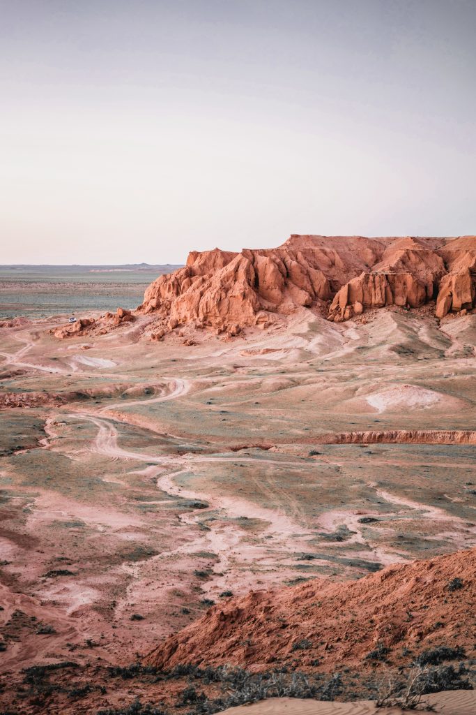 El Gobi no es solo arena: es un universo de contrastes. Sus dunas —como las de Khongoryn Els, conocidas como las “Dunas que Cantan”— se elevan majestuosas sobre un horizonte sin fin. En sus entrañas se esconden cañones como Yolyn Am, un desfiladero donde el hielo permanece incluso en verano, y valles que revelan fósiles de dinosaurios en Bayanzag, el célebre “Cementerio de los Dragones”. El Gobi es también hogar de camellos bactrianos y gacelas, un lugar donde la vastedad del paisaje recuerda lo diminuto y efímero del ser humano.