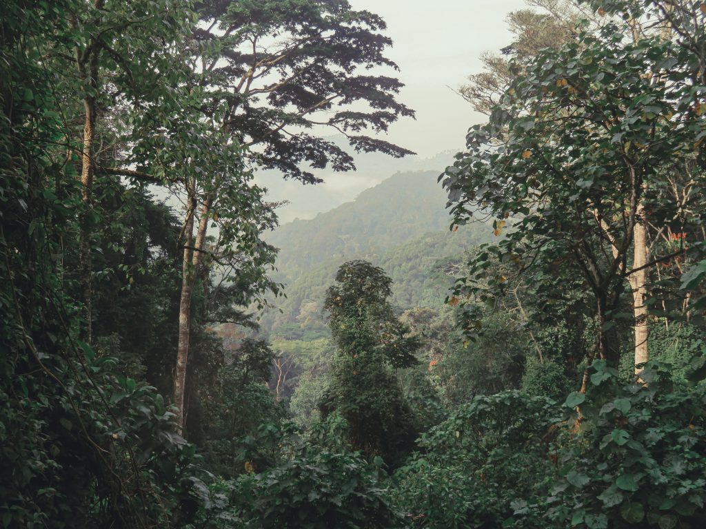 “Sabana y selvas que se extienden hasta el horizonte, silencio que envuelve volcanes activos, aromas de tierra húmeda y café, tonos esmeralda iluminan gorilas, escenas de vida salvaje que fascinan.”